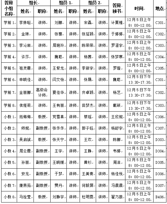 2026届开题答辩安排一览表